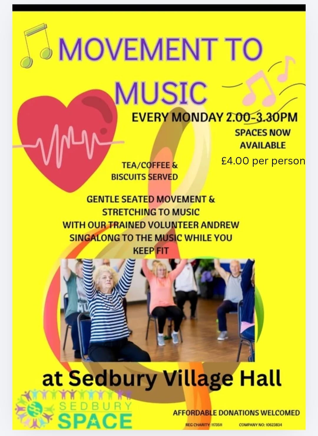 sessions are suitable for anyone wanting to improve or maintain their strength and fitness, including those concerned about their balance or with long term health conditions. A qualified instructor leads the classes and exercises are done alongside music with seated/ standing-holding on for support and may use simple apparatus, including balls and rubber stretch bands.